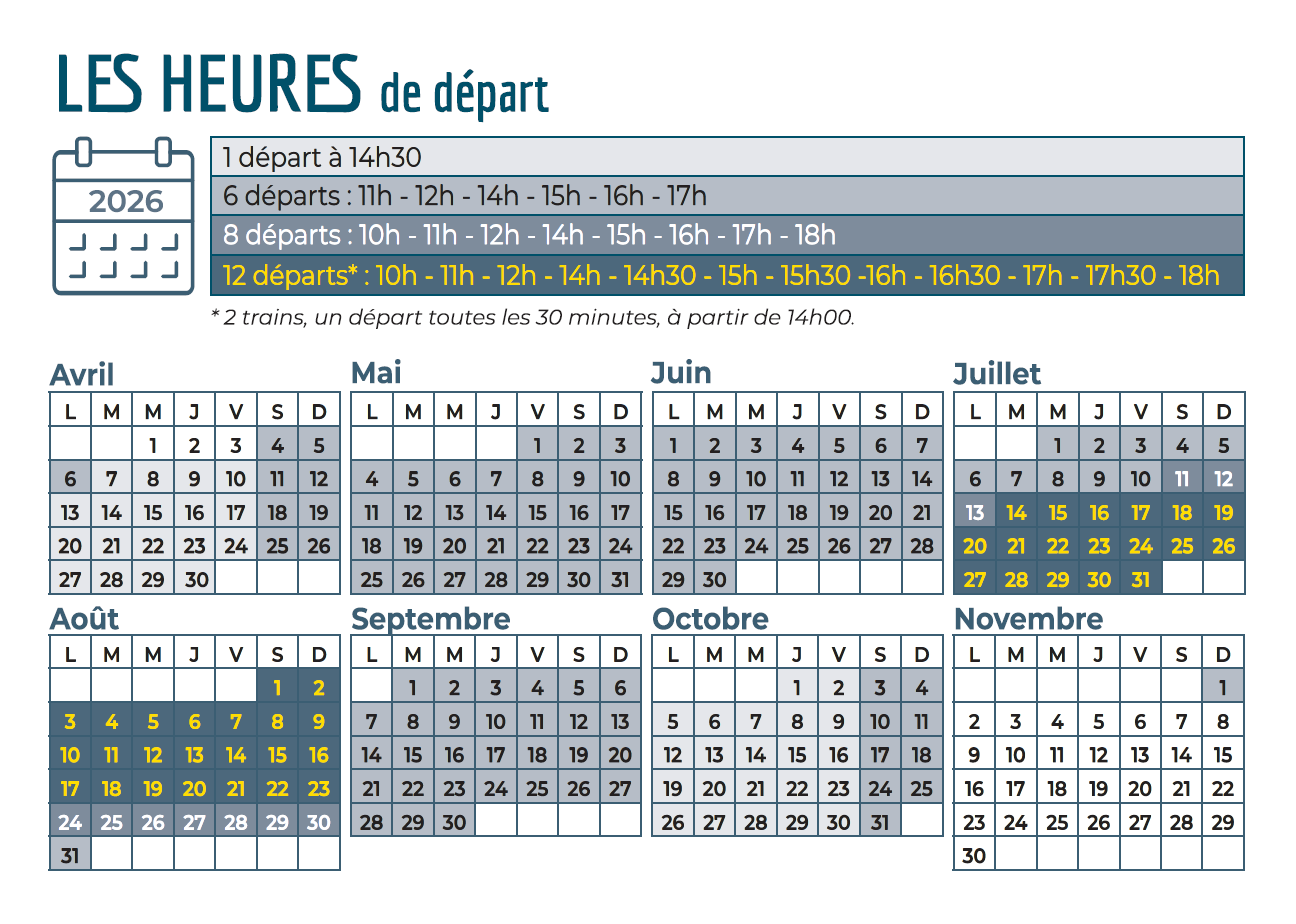 - Un départ à 14h30 en Semaine en Avril et Octobre